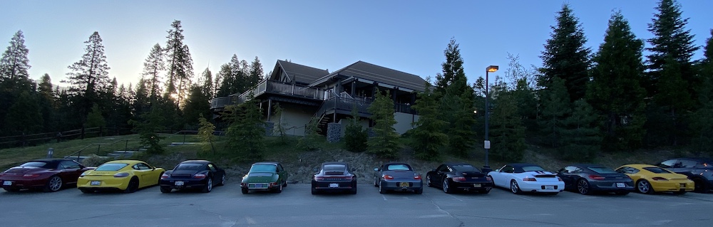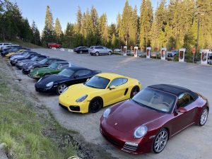 Tanaya Lodge had a “reserved” parking area for all our cars, just adjacent to the lodge itself. Folks tended to respect the club’s space but over the next couple days, a few “non members” got in our line.. So one of our members returned the favor and parked in “their” Tesla charging station for a couple hours!!