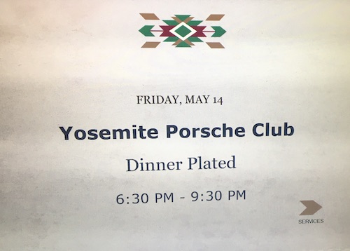 We rallyed at Smokey’s Grill in Modesto at “noon”. Several members got there a bit early to have a quick lunch before the “drive” to Tenaya Lodge. This year’s “tourmeister” promised some “new” roads over the 126 mile transit to the Lodge. Leaving Modesto was an exercise in patience through the series of traffic lights on Claribel Road until we got into “the country”. Driving through orchards we ended on La Grange Road (aka J59) to Snell. Things got interesting with a left turn onto Merced Falls Road, then Hornitos Road and then Bear Valley Road. The roads were entertaining and generally well paved. The rest stop in Maraposa provided time to stretch one’s legs and visit the “services” before heading back out on CA140/49 and a jog onto Triangle Road before the final stretch on CA41 and up the mountain to Tenaya Lodge.