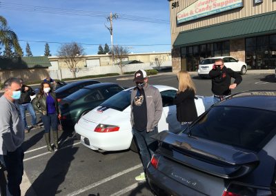 Of course, a “first of” event often has some challenges, and this one was no different.   The first challenge was the weather.  The forecast had a band of showers moving in Friday night and possibly stretching into the morning — not good!   But Yosemite Region has a bit of “Camelot” luck now and then as the showers came in during the dark of night and gave way to bright sunshine for the morning!   aThe second challenge was that California is still under various COVID restrictions, so (this) Cars and Coffee had to be a meet in the parking lot and “tailgate”.     Again, no problem.   Smokeys took our orders and we were able to bring our delights into the parking lot.